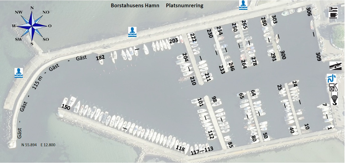 Ordinarie båtplatser fördelas enligt kölista av Borstahusens Hamnförvaltning AB på uppdrag av Landskrona Stad.